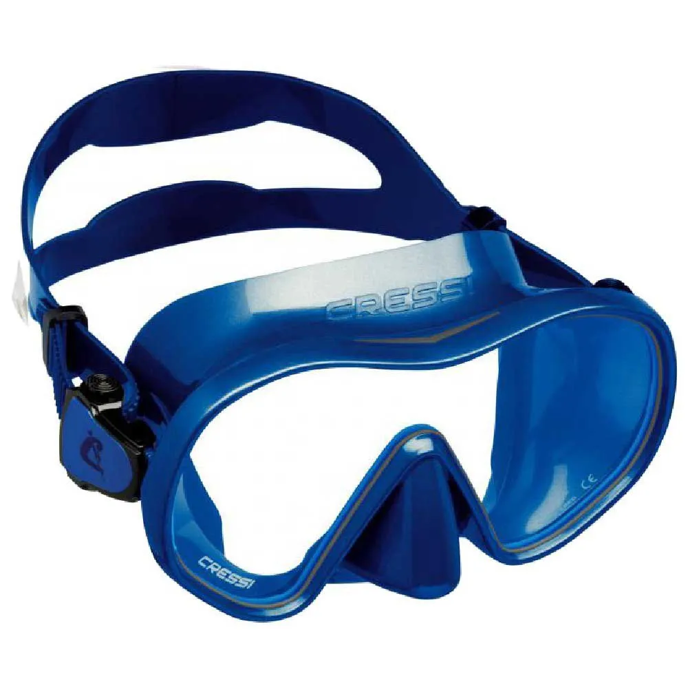 Single-lens mask featuring a unique assembly of lens and skirt without a frame. Cressi’s F-Dual Mask Design Bonds a High-Grade Silicone Double Feathered Edge Skirt directly to a Single Tempered Glass Lens for the Ultimate in Simplicity. Colorful Frameless technology. The silicone facial is assembled directly on the glass without the need for a frame. This system guarantees good visibility in all directions. The Low Internal Volume allows for effortless clearing and the Quick-Adjust Strap Buckles are molded directly into the Skirt for a Flexible Fit and Reduced Drag. The Cressi F-Dual Mask has a Wide Split Mask Strap Design for Comfort and to give Even-Tension on the Skirt for a Proper Seal.