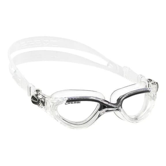 The Cressi Flash swimming goggles with clear lenses are goggles with independent lenses, characterised by the insertion of an elastic element inside the frame that allows them to adapt to a large number of facial profiles, with lenses that are slightly curved towards the outside to offer maximum visibility.