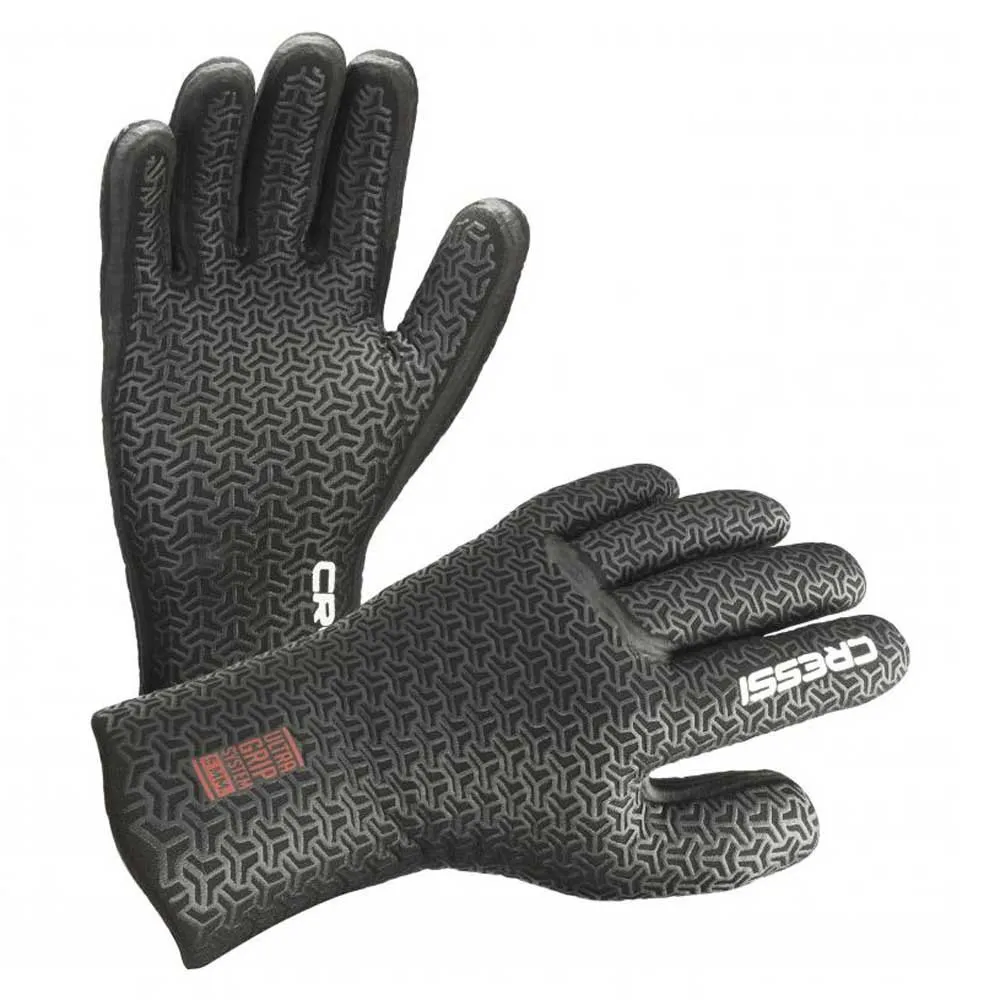 Five fingered gloves, available in 3 mm and thick neoprene. Alayer of polymer is spread along the seams to protect and seal them, thereby increasing the resistance to wear, the lifetime of the suit, and its insulating power.
