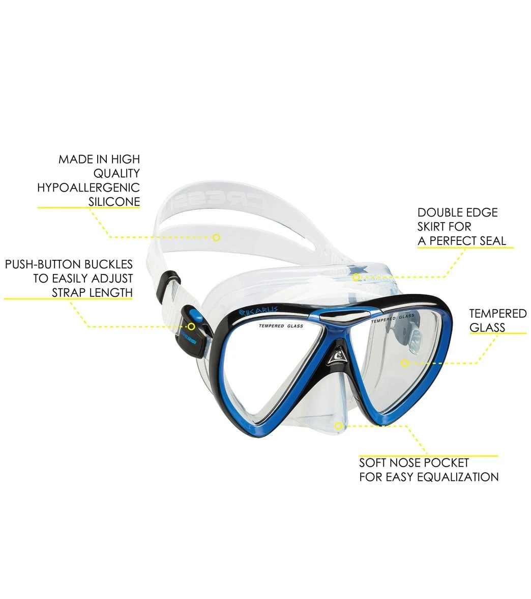 Discover what’s under the sea with the Cressi Ikarius Mask and Orion Snorkel Set.