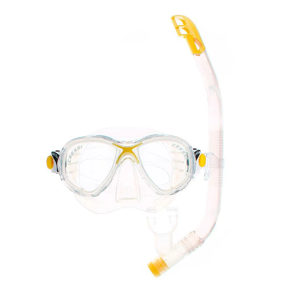 This mask has two separate lenses, and is specifically designed for snorkeling and free diving.